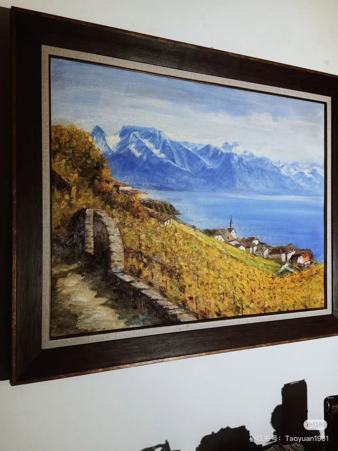 | 这幅画,画的是瑞士拉沃葡萄田(下面小镇是沃维)。在曾生心中,这里的葡萄园最美。