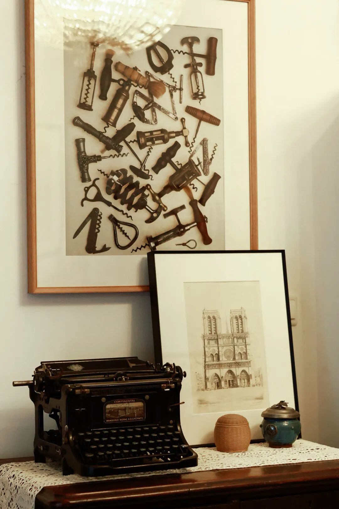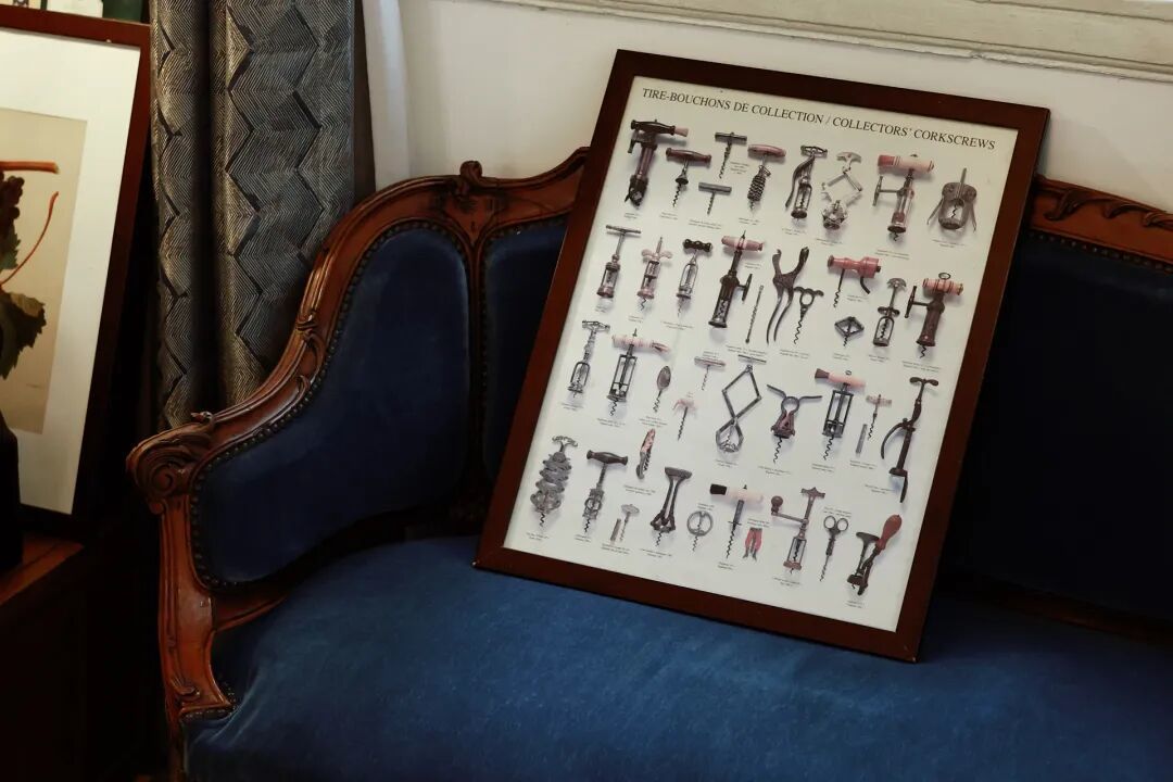 | 从各国淘来的古董开酒器,曾生找人拍成了海报,挂在萄园。
